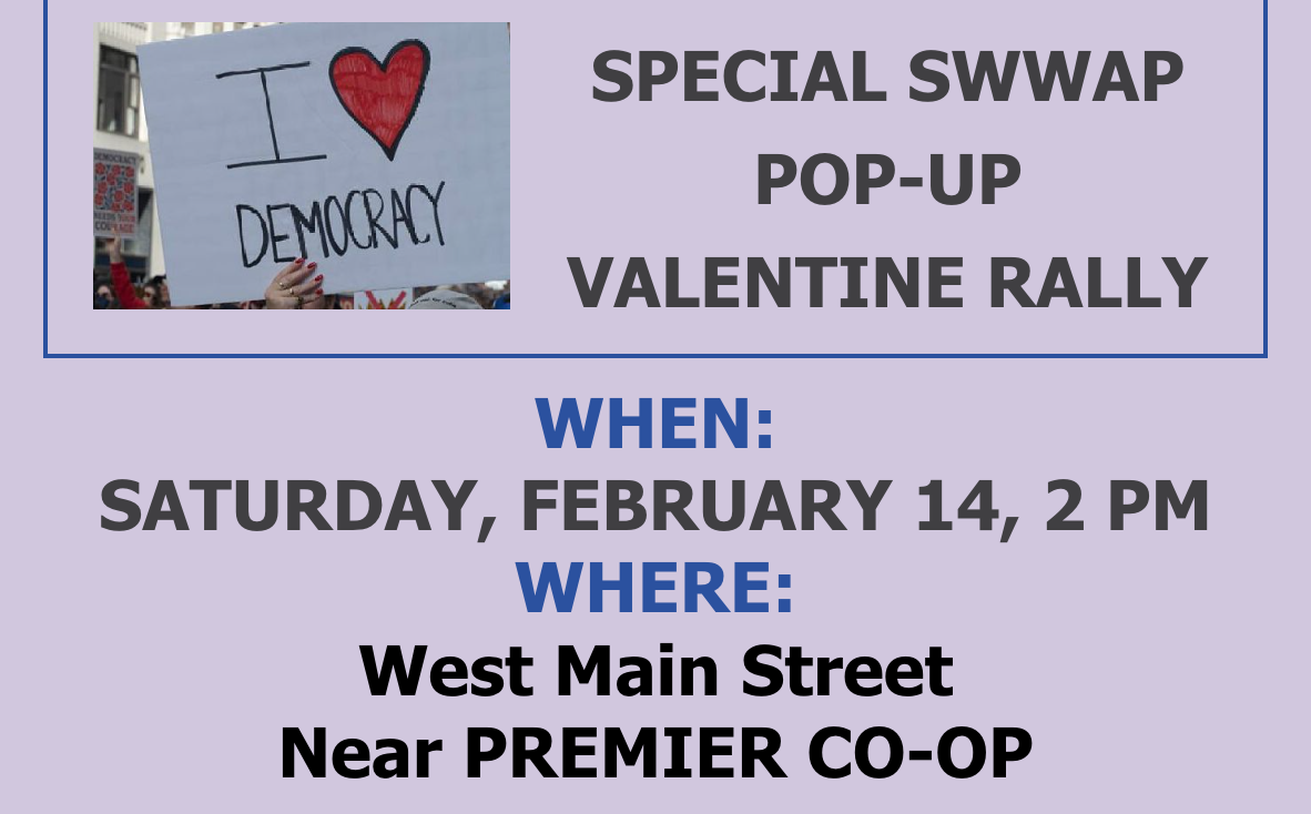 We continue our rallies in 2026. It’s important and invigorating to make a statement in our community of what we stand for. We hope you will join us! Sign up and bring your friends!